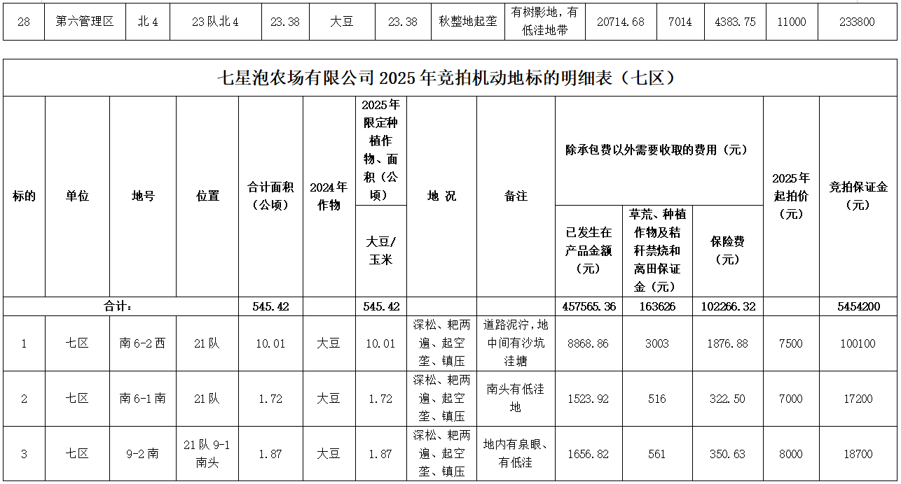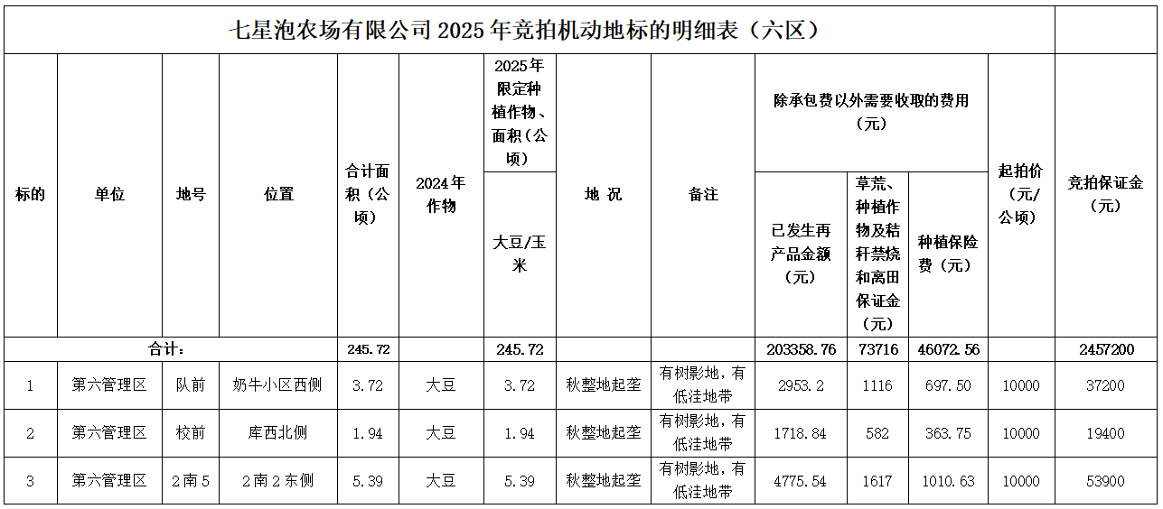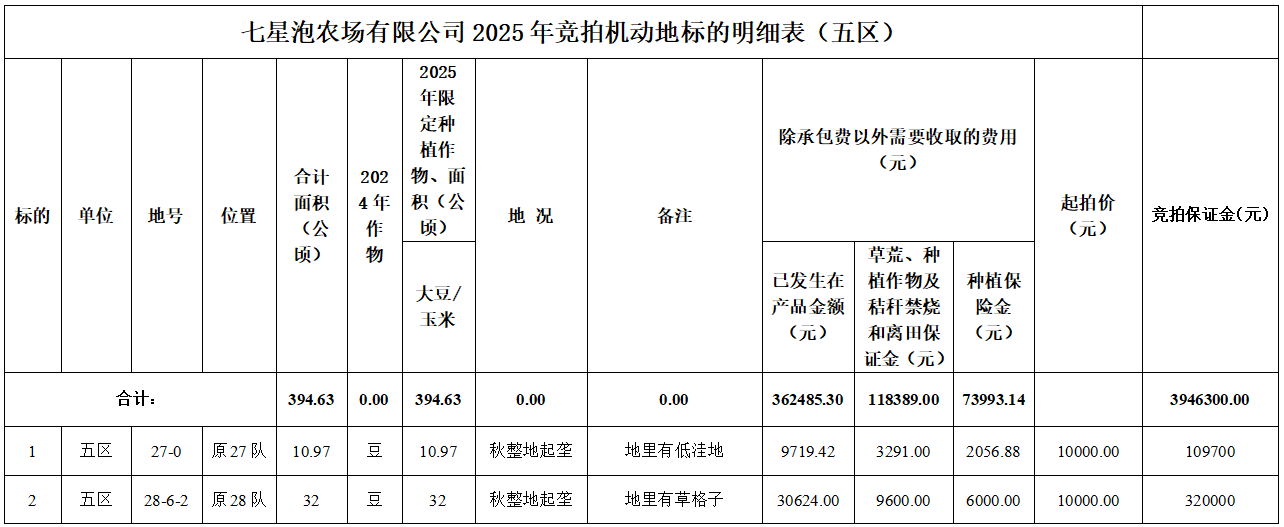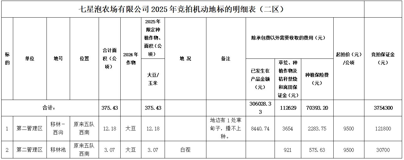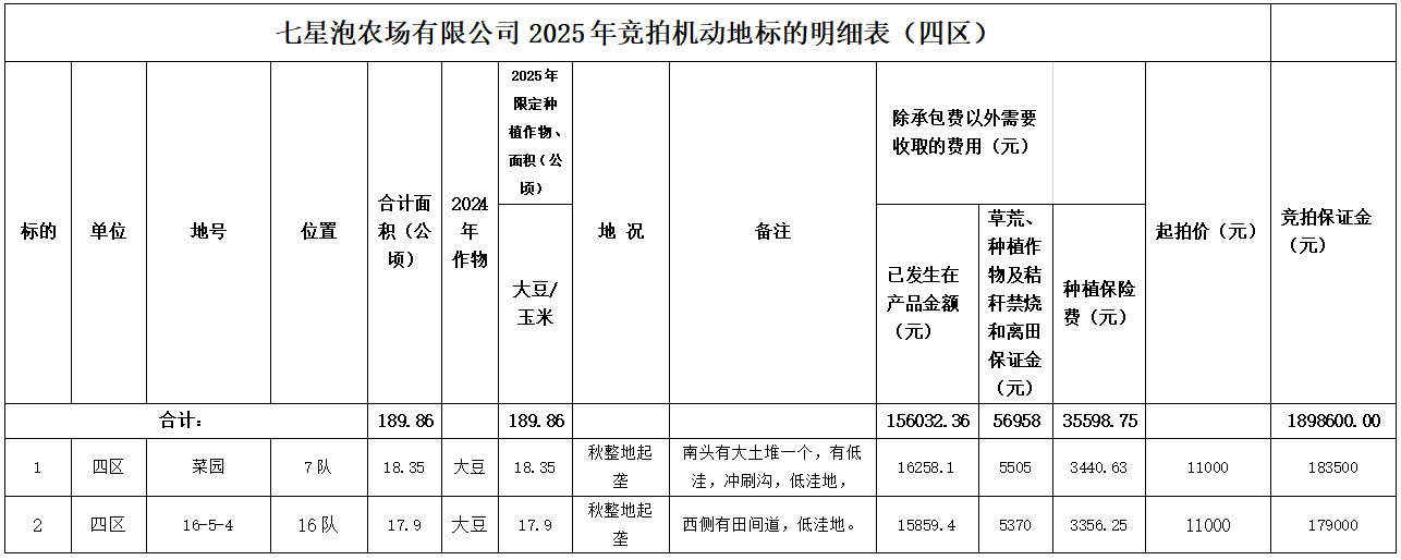 2025年3月7日北大荒集團黑龍江七星泡農(nóng)場有限公司“機動地”一年承包權拍賣公告