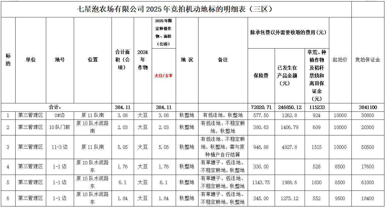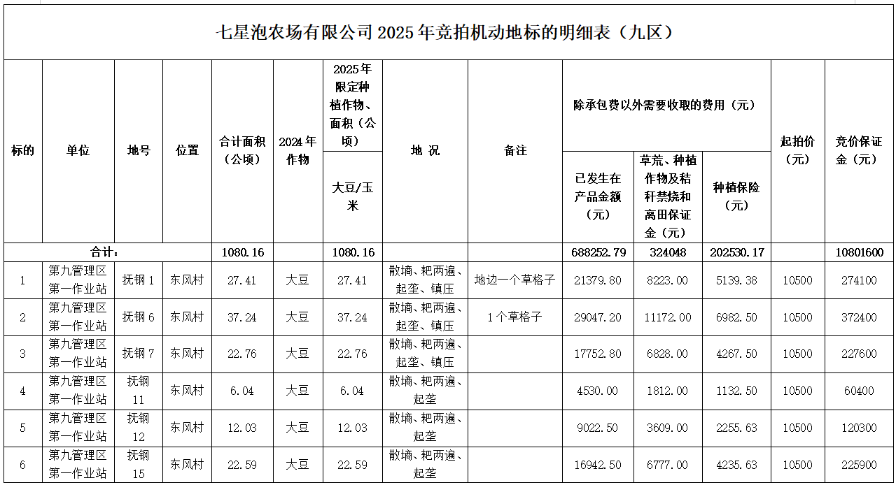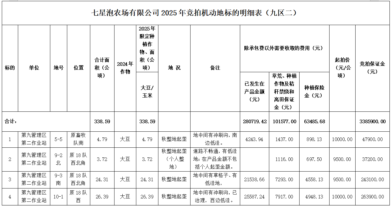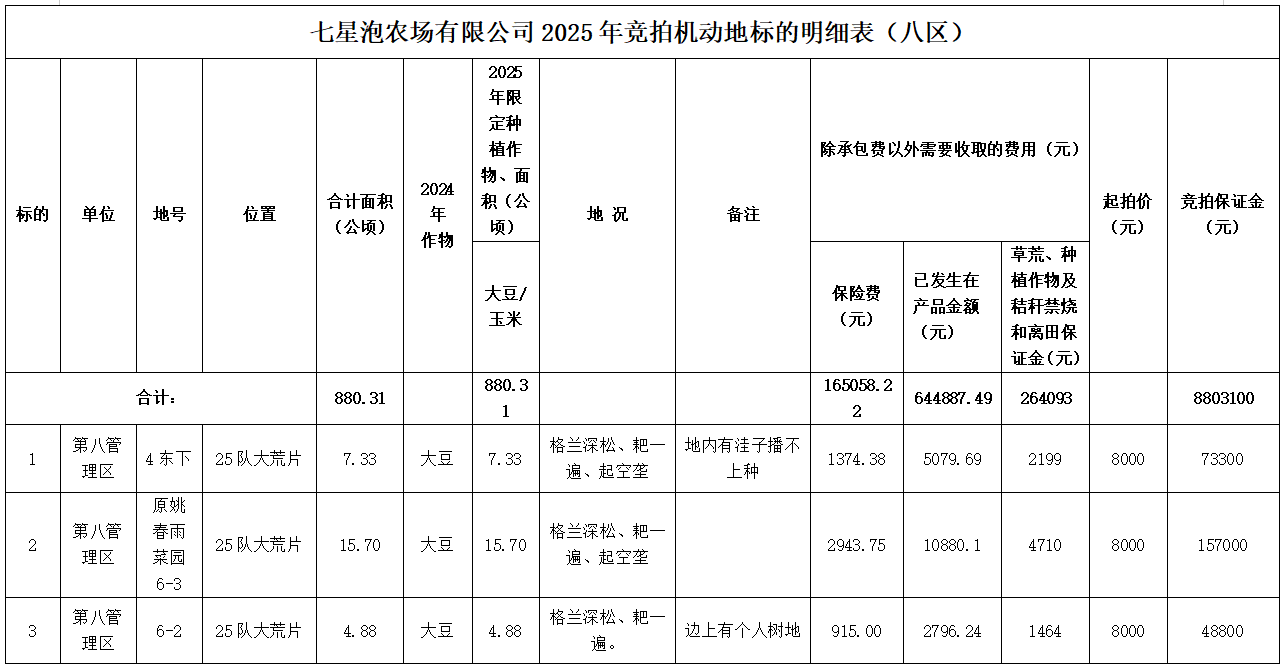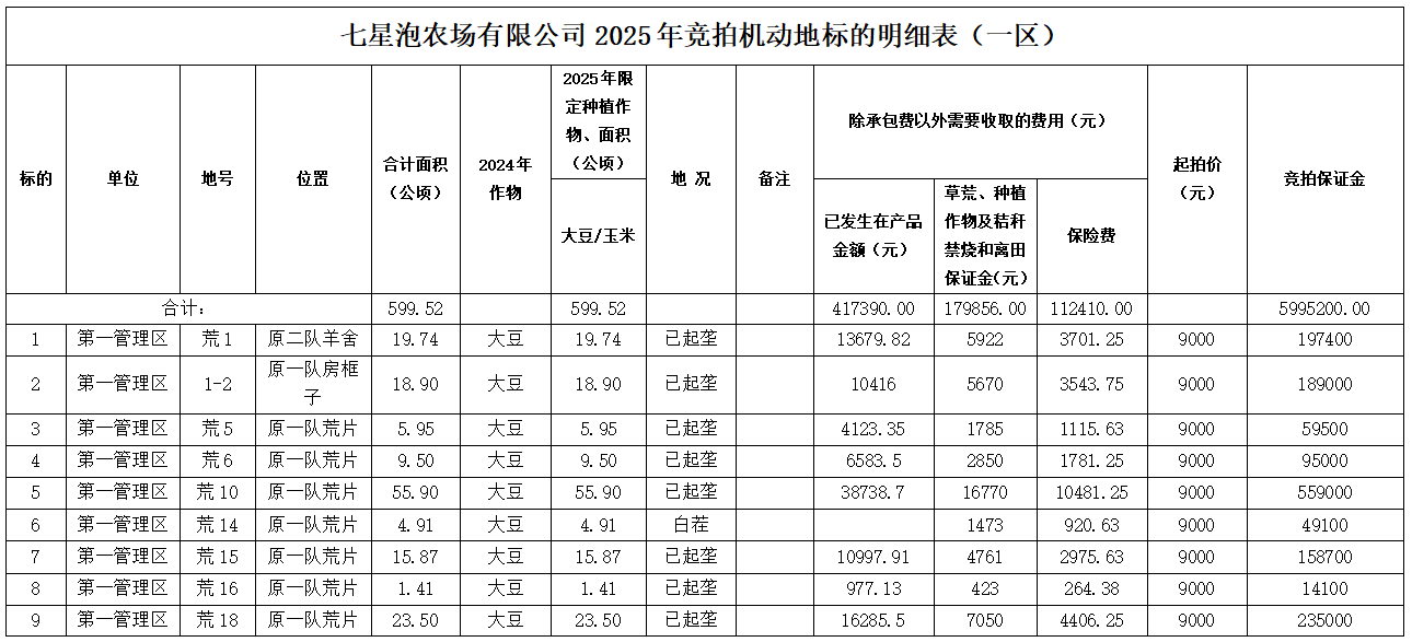 2025年3月7日北大荒集團黑龍江七星泡農(nóng)場有限公司“機動地”一年承包權拍賣公告