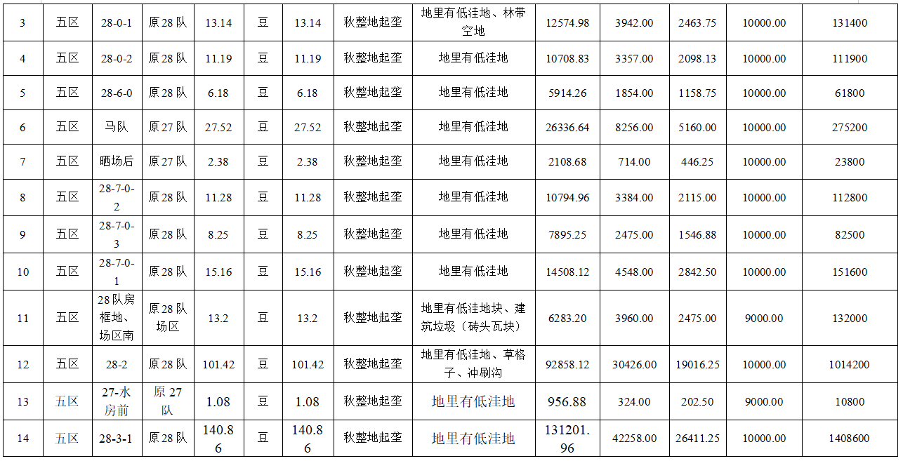 6、除土地承包費外,競拍成功后,買受人需支付地塊已發(fā)生的農(nóng)業(yè)在產(chǎn)品、農(nóng)業(yè)種植保險費、草荒、種植作物及秸稈禁燒和離田保證金等各項費用,具體費用請關注公告表格。