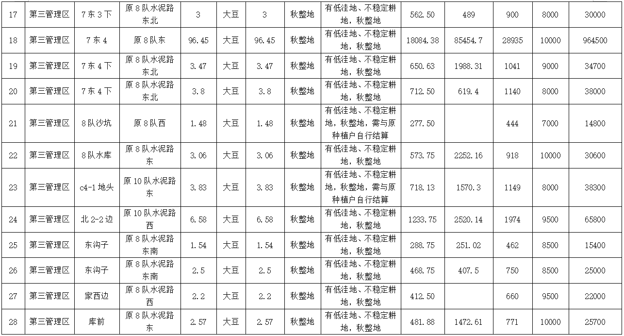 2、“機動地”一年一競拍,合同一年一簽,本年度“機動地”發(fā)包與下一年度土地發(fā)包無關,中標者必須本人與農(nóng)場有限公司簽訂承包合同。