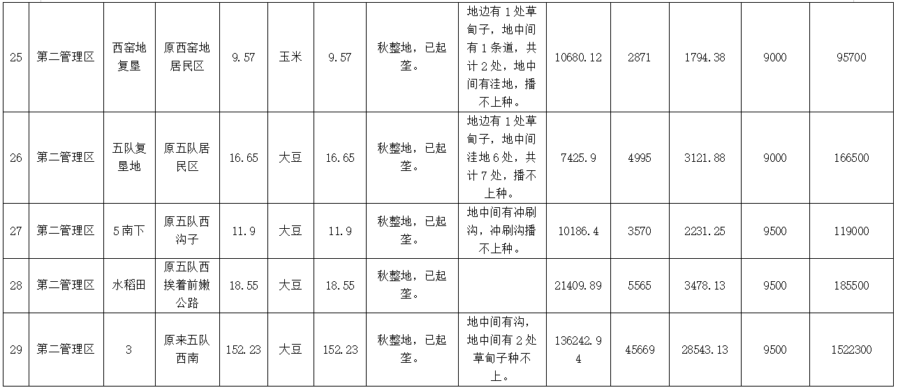 3、農(nóng)場有限公司不組織競買人實地踏查地塊,由競買人自行實地踏查地塊,了解地塊位置,包括農(nóng)路情況、土質(zhì)條件、相鄰情況、地塊邊上及內(nèi)部樹帶分布、地塊內(nèi)部含有溝和草格子及堆棄物等可能會影響種植的各種因素、前茬作物及用藥情況自行了解、不穩(wěn)定耕地占比、秋整地方式、在產(chǎn)品費用等情況。競買人參與競拍活動,視同競買人已經(jīng)******了解標的地塊的全部現(xiàn)狀,并對不穩(wěn)定耕地可能會影響實際播種面積與競拍面積不符等情況。如競買人未實際了解標的物現(xiàn)狀,出現(xiàn)任何影響播種面積及各種因素影響作物產(chǎn)量等問題,由競買人自行承擔,農(nóng)場有限公司與拍賣人不承擔任何責任。