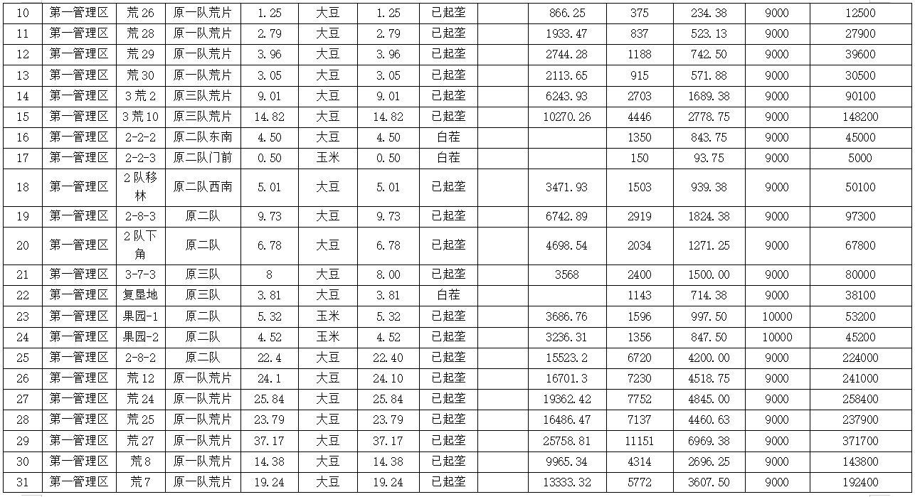 9、如競買成功,則競拍保證金自動抵頂部分承包費,買受人須在成交后三日內(nèi)按實際成交地數(shù)將剩余承包費、已發(fā)生在產(chǎn)品費用、農(nóng)業(yè)種植保險費、草荒、種植作物及秸稈禁燒和離田保證金等各項費用統(tǒng)一繳納至拍賣行指定賬戶。